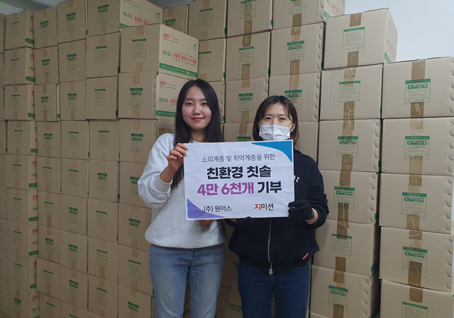 ㈜원어스, 친환경 칫솔 기부